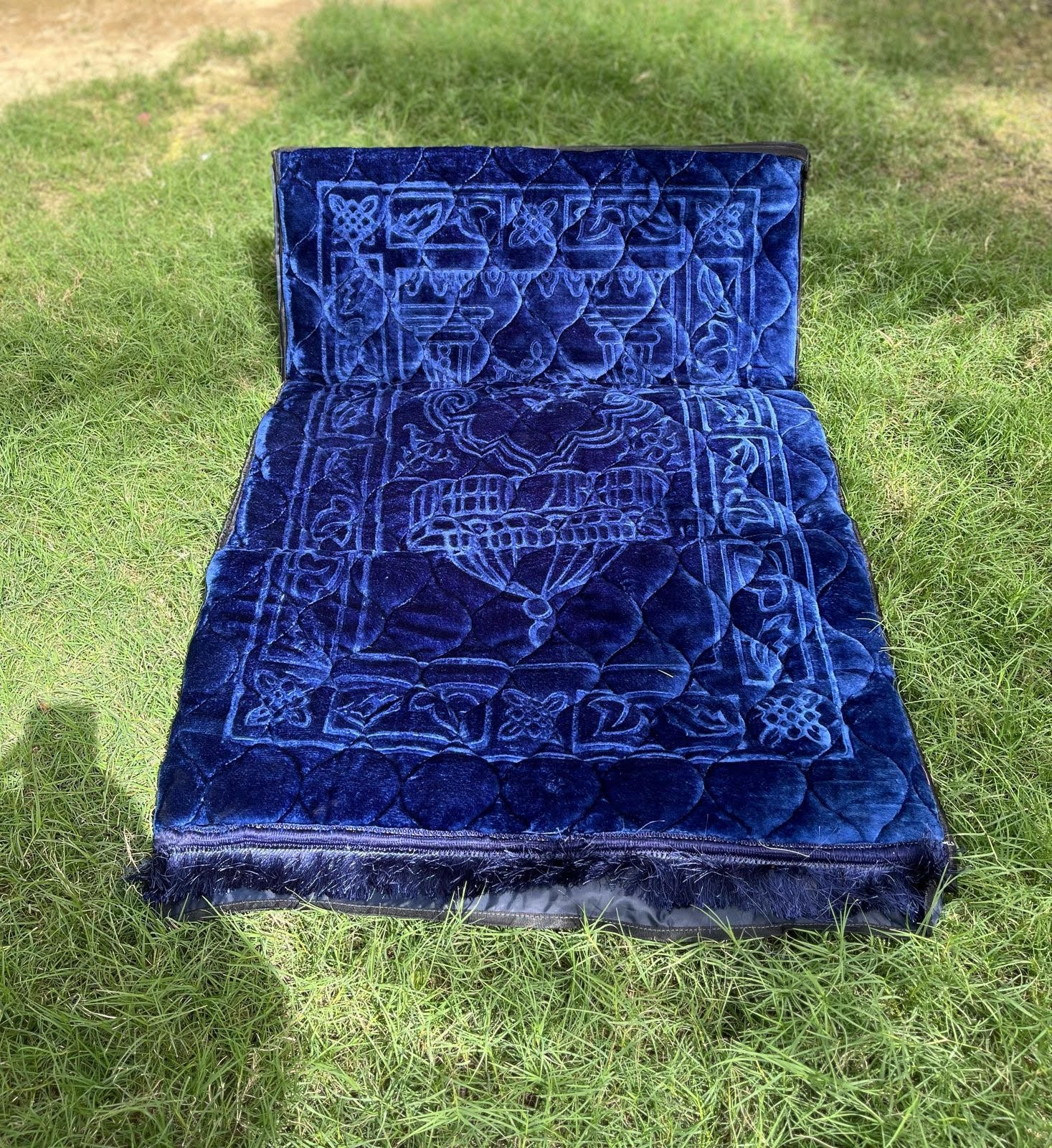 Jai Namaz Luxury Velvet with Back Support (Blue)