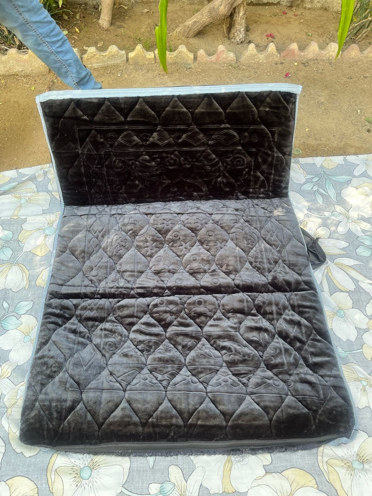 Jai Namaz Luxury Velvet with Back Support (Plain Black)